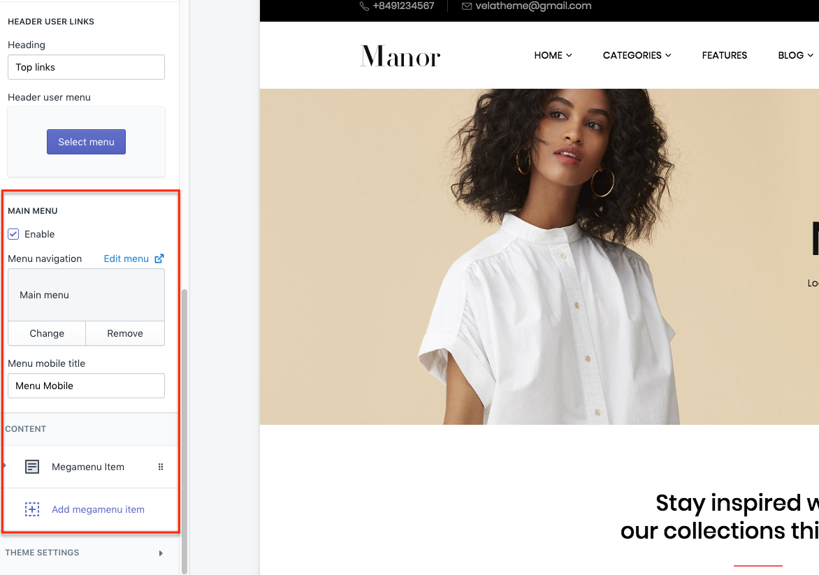Our theme allows you to enable/disable main menu, and select navigation for it.