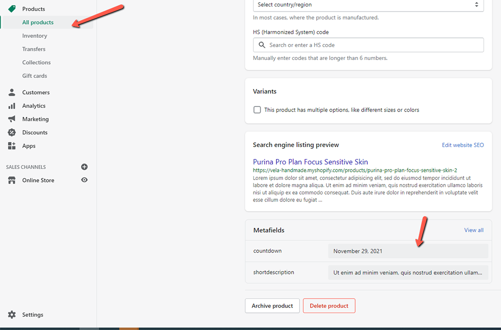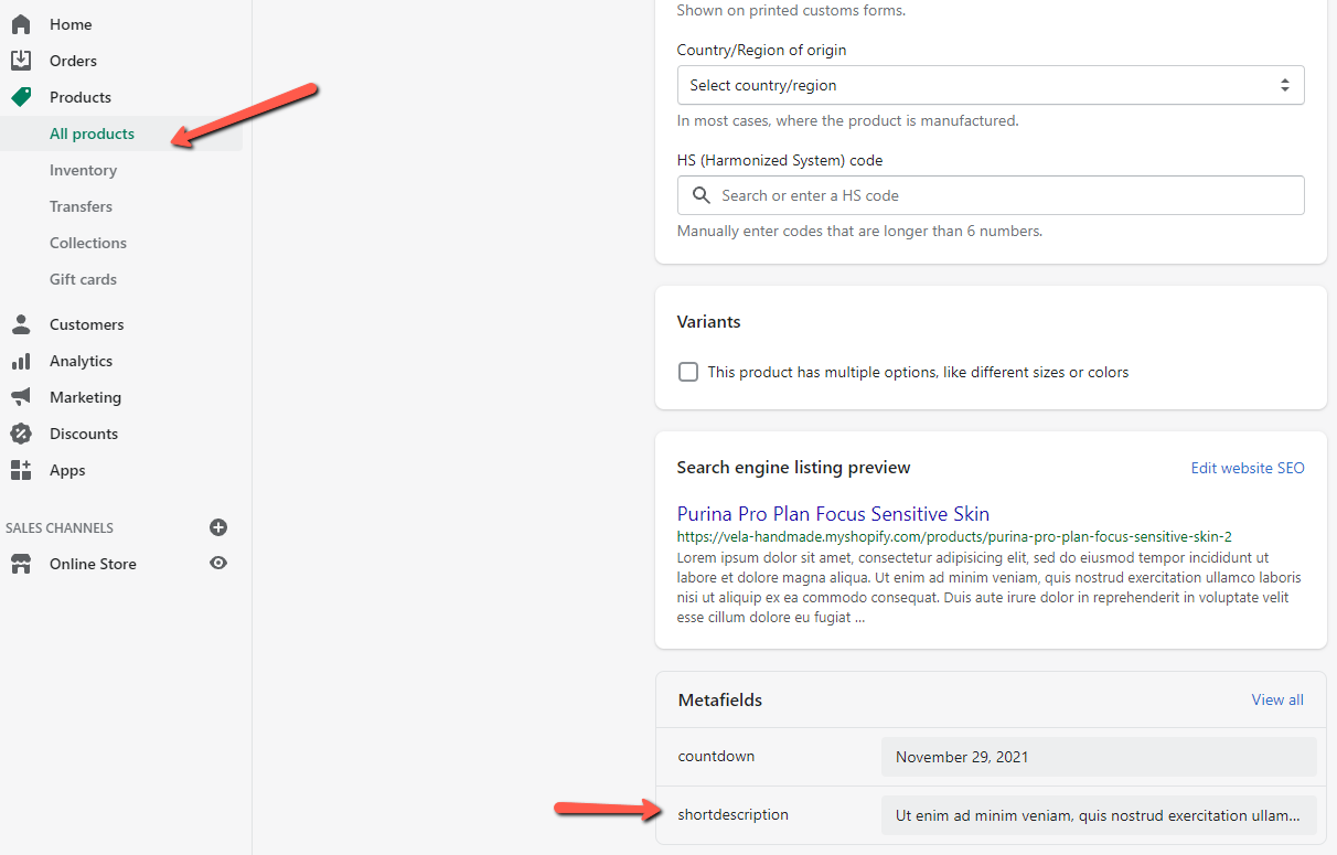 2. Input product short description