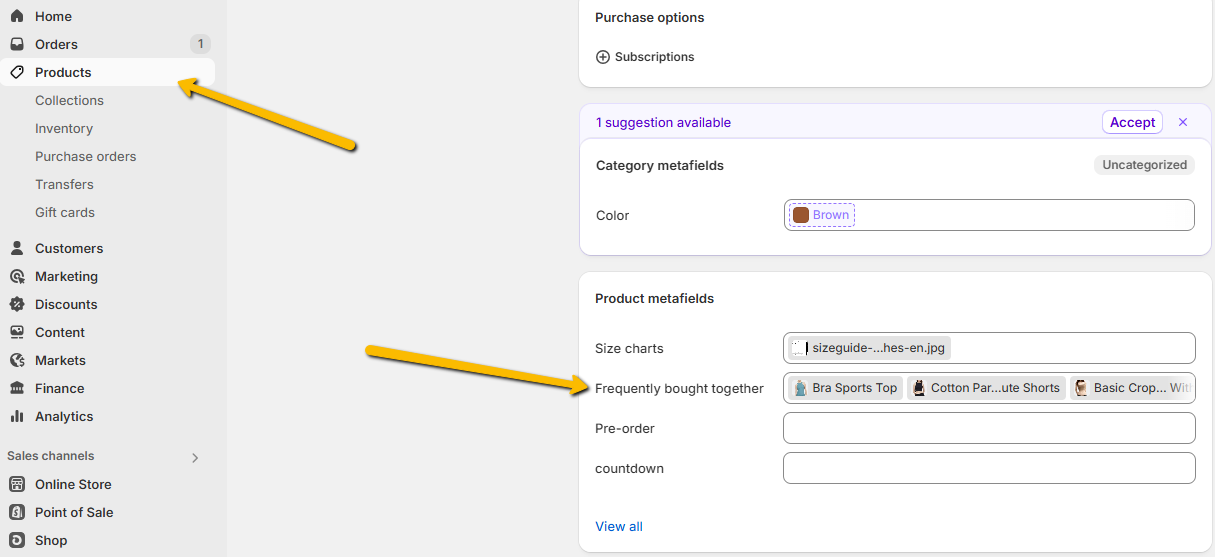 1. Create a metafield name "Frequently bought together"