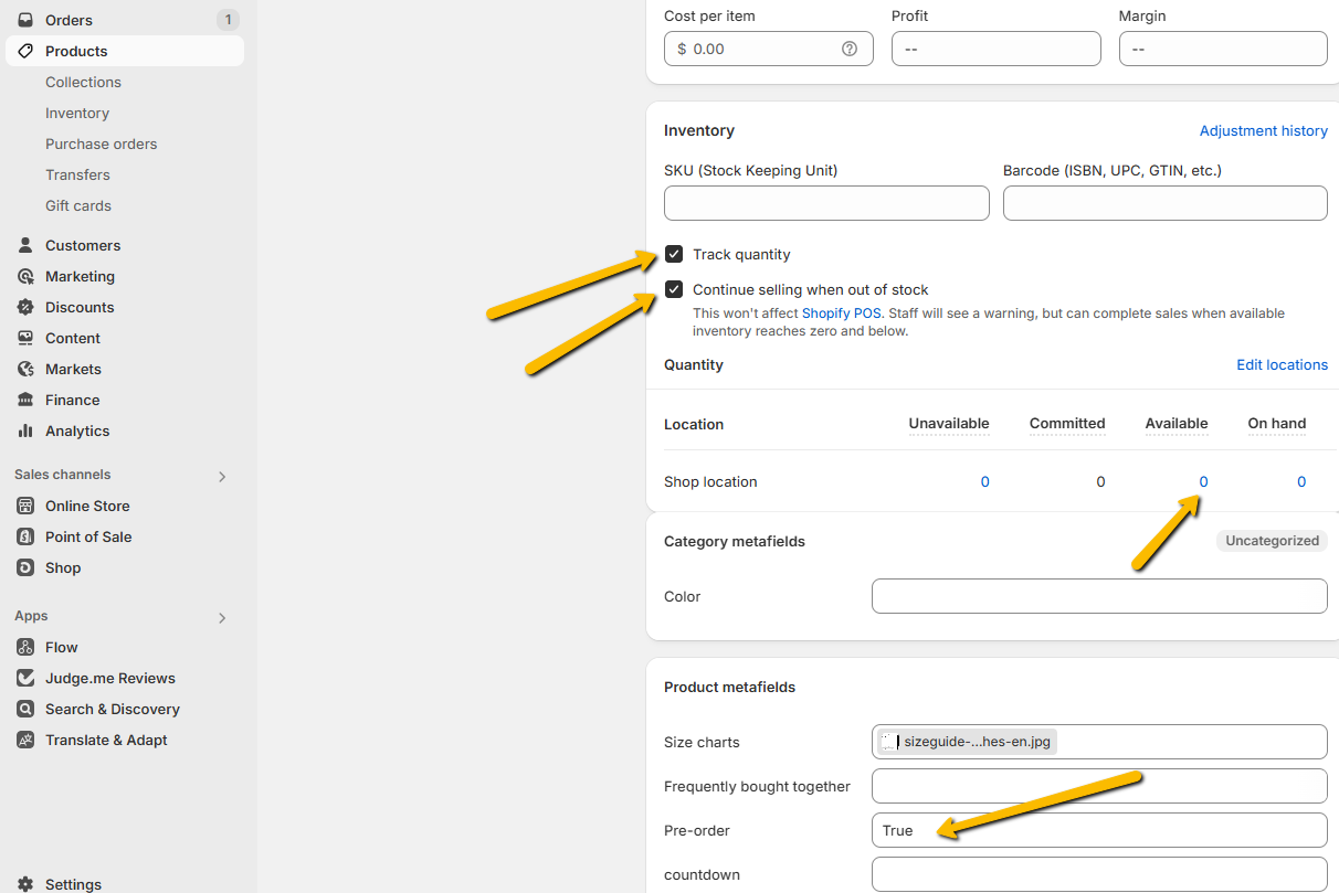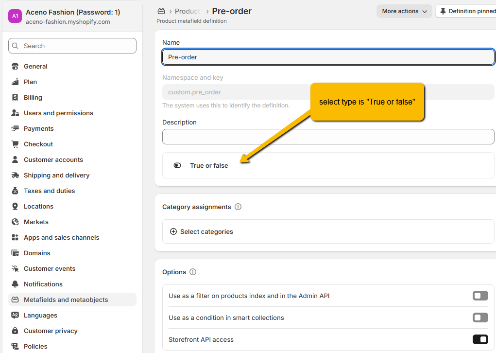 1. Create a metafield name "Pre-order"