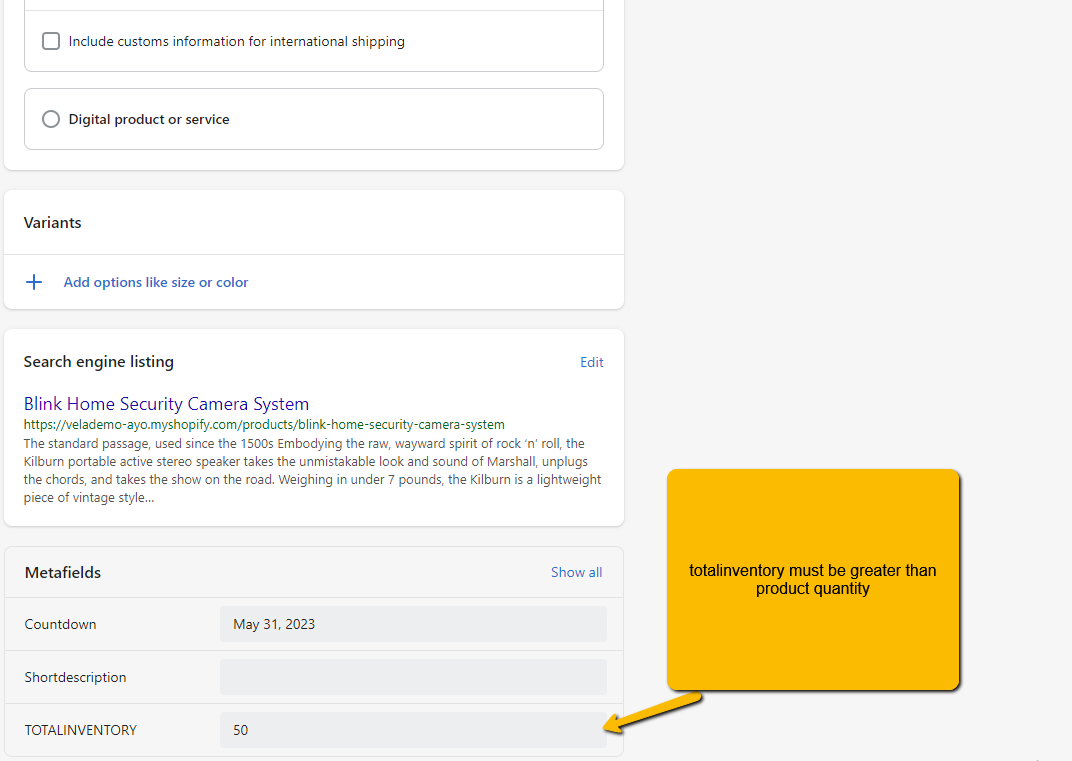 1. Create a metafield name "totalinventory"