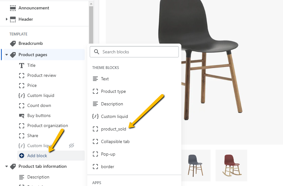 3. Go to Product page > Product information > add block > Product_sold