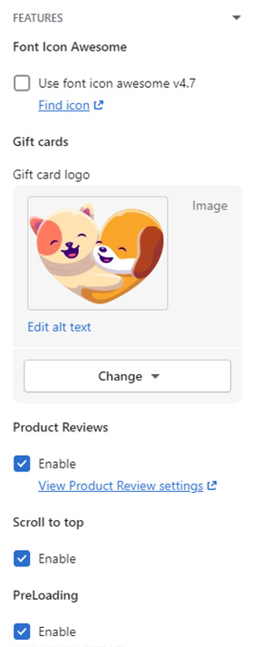 On the Vela Features, you can customize the main features of the theme. You can enable/disable and config for each features.