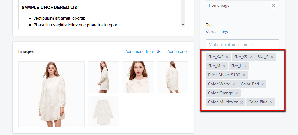 Create filters to let customers search products by type, vendor, size, color, and custom options. Automatic filters can be easily created and will sort products based on information in the product tags.