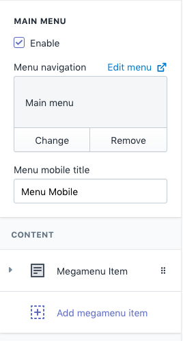 Our theme allows you to enable/disable main menu, and select navigation for it.