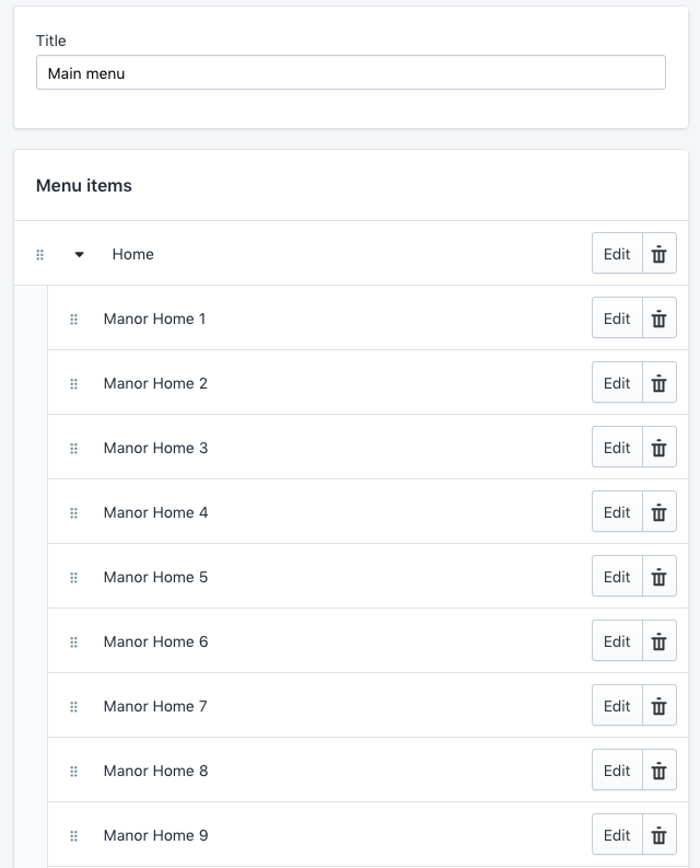 B4. Add menu items to include in the new drop-down menu. Click Add menu item, enter the name of the menu item, and enter or select a destination for the link.