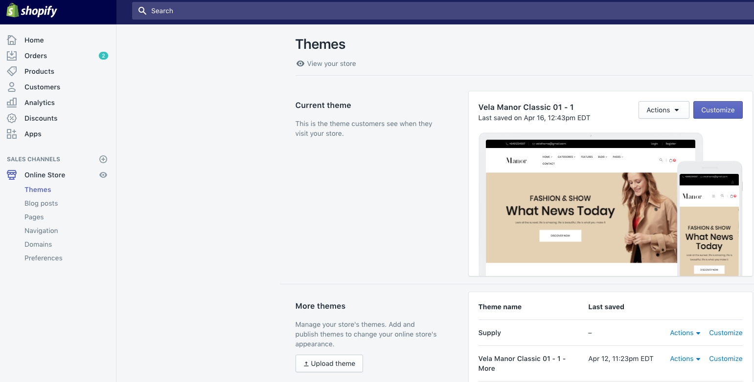 - Preview theme: If you want preview your store in full-screen on new tabs. You need to do is clickPreview theme, Then your store will be opened in a new tabs. It will help you see the your store as your customers.